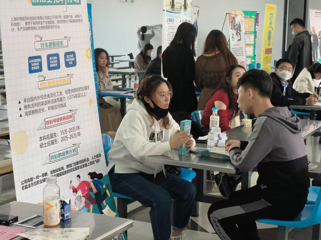 3月15日下午,williamhill英国中文与苏州市工业和信息化局生物医药处联合举办的2023届春季专场招聘会在石湖校区二食堂举行。