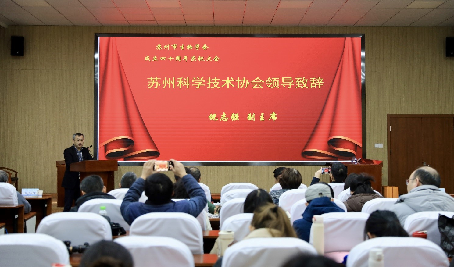 倪志强副主席高度赞扬了苏州市生物学会过去40年所取得的辉煌成,并期望学会在未来能够继续引领生物学领域的发展潮流,为苏州市的科技进步贡献力量。