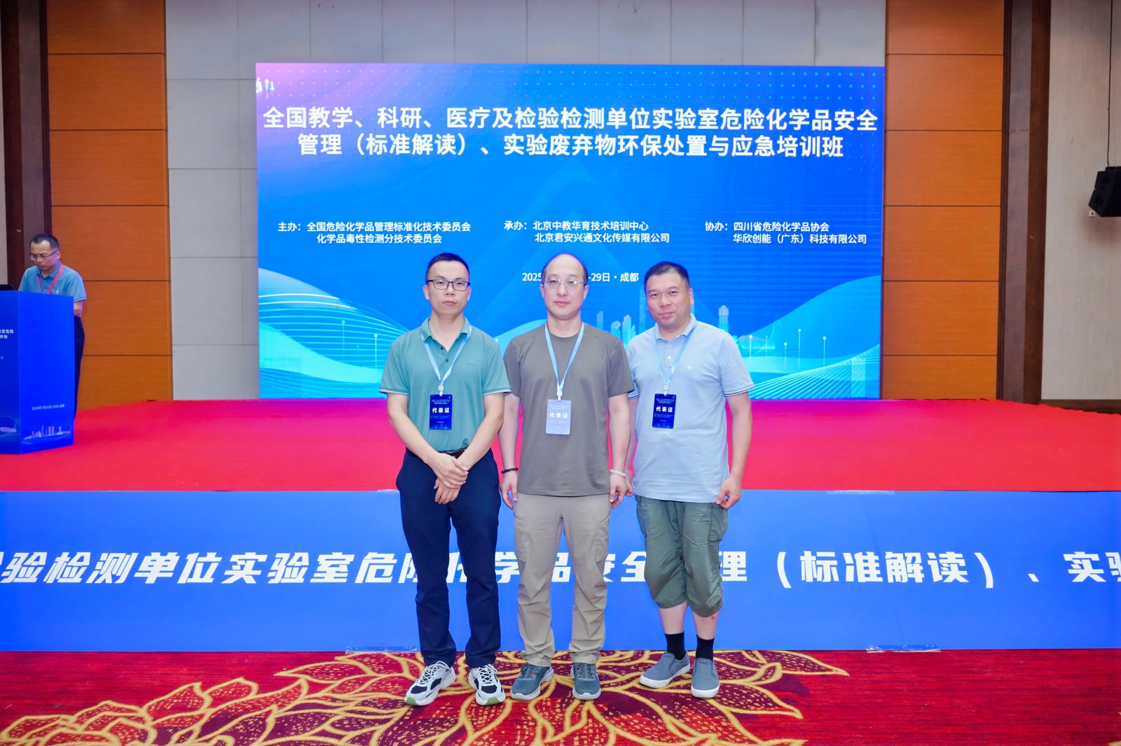 2025年7月25日至29日,由全国危险化学品管理标准化技术委员会化学品毒性检测分技术委员会主办的“全国教学、科研、医疗及检验检测单位实验室危险化学品安全管理(标准解读)、实验废弃物环保处置与应急培训班”在四川成都成功举办。我院党委书记徐治初、副院长周宇扬、实验中心主任顾华杰全程参加了此次高规格培训。