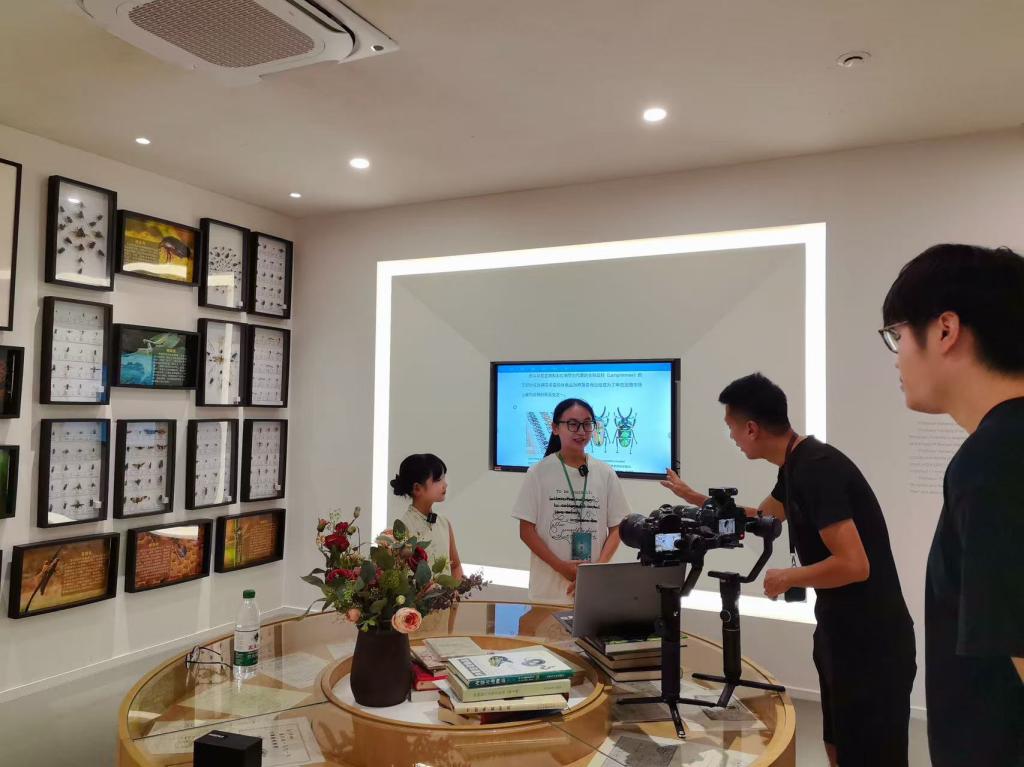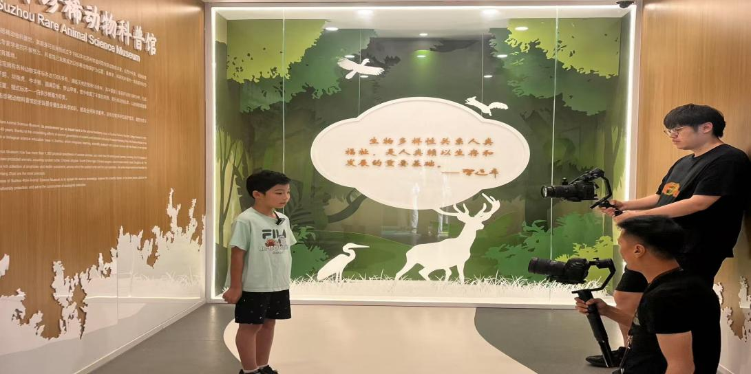 8月17日,苏州广播电视总台导演马森带领《乐游江南》第四季剧组的全体小朋友们探访了位于我校的总体国家安全观现场教学点——苏州市珍稀动物科普馆。williamhill英国中文副院长、科普馆党支部书记秦粉菊出席拍摄活动,科普馆党支部学生党员、生物科学(师范)专业邹贤贤同学作为志愿者代表全程参与拍摄。