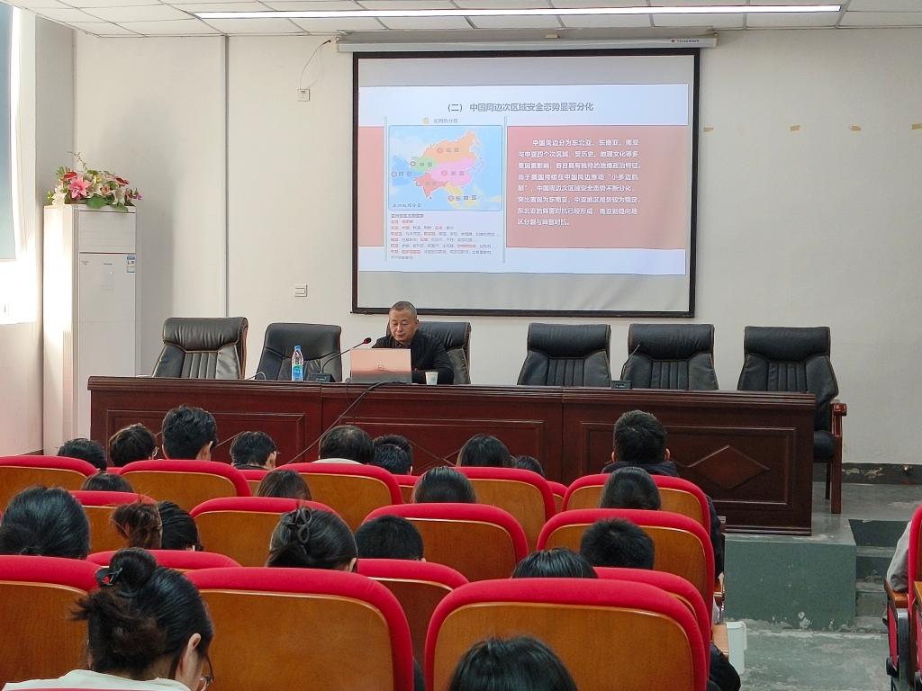 李勇从新时代中国周边工作新成就、中国周边工作面临的新形势和努力开创周边工作新局面三个方面,回顾我国近年外交成就,重点分析国际形势变化,立足国家外交策略方针,详细解读党中央面对“百年未有之大变局”的战略判断与部署。他运用鲜活案例,引导学生深刻认识中国构建人类命运共同体的崇高责任与战略意义,勉励同学们增强忧患意识、坚持底线思维,发扬斗争精神、增强斗争本领,以理性和智慧直面困难,展现新时代青年的担当与作为。