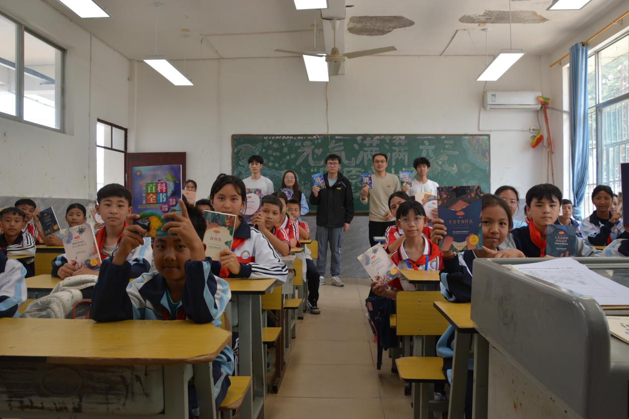 调研期间,师生团队专程前往绿春县骑马坝乡中心小学,开展爱心图书捐赠活动。捐赠科普读物、文学名著、绘本故事等各类图书100余册。捐赠仪式上,学院教师代表鼓励孩子们多读书、读好书,用知识改变命运,走出大山、建设家乡。
