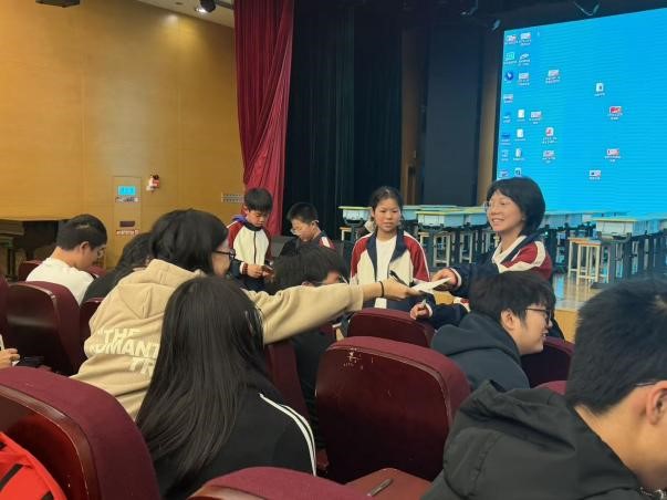 见习尾声,同学们观摩了一节别开生面的“情绪调节”主题班会课。课堂上,学府中学的老师通过绘本引入,引导中学生正视情绪、学会疏导。见习的同学们也主动参与其中,在互动环节里耐心倾听中学生的小烦恼,结合所学知识给出切实建议。同学们用温暖的话语送上真诚祝福,课堂上笑声与掌声交织,成为见习中一道温馨的风景线。