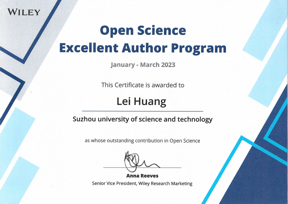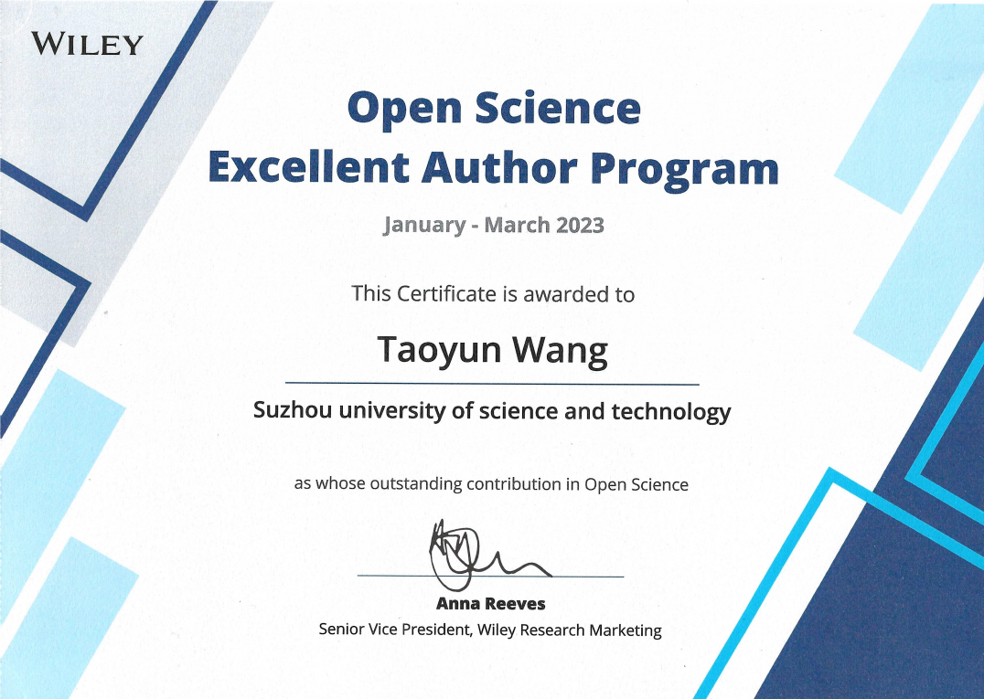 该论文在线发表后的三个月内全文下载量位居该期刊中国作者2023年第一季度发表文章三月内下载量前五,因此荣获2023年第一季度“Wiley威立中国开放科学高贡献作者”。这是为助力《国家“十四五”期间人才发展规划》中关于促进基础研究科技创新的重要目标,为感谢中国作者在开放科学与促进科技创新中做出的巨大贡献,Wiley中国在较受中国作者认可的开放获取期刊中评选出的若干位“Wiley威立中国开放科学高贡献作者”。
