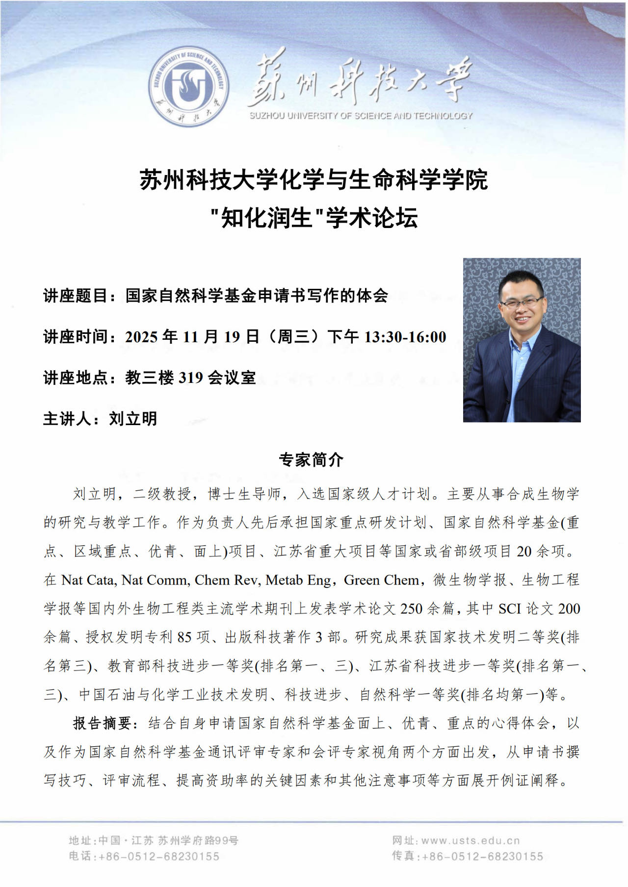 地点:化生学院教三楼319