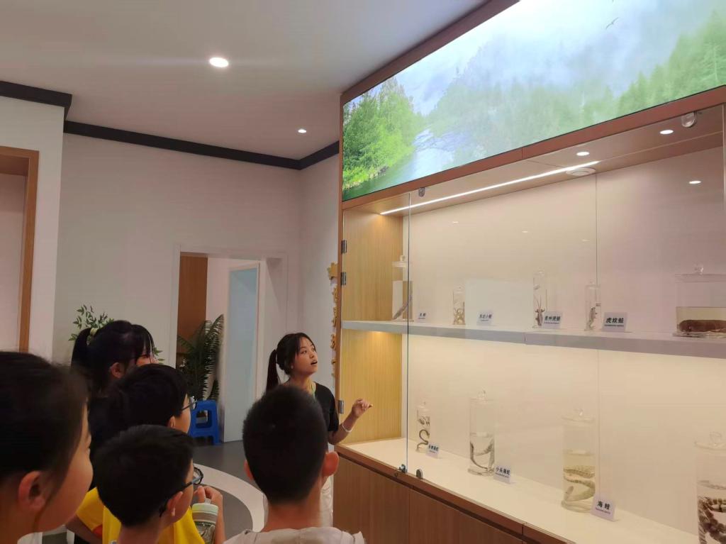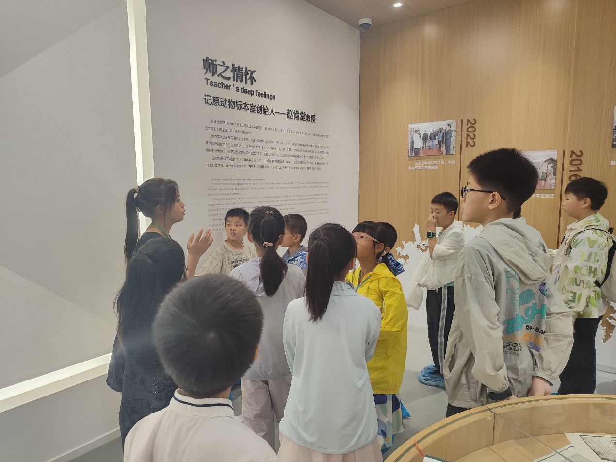 参观环节,在袁红霞老师和志愿者的带领下,孩子们兴致勃勃地参观了苏州市珍稀动物科普馆。馆内丰富多样的珍稀动物标本和详实的图文资料,为孩子们打开了一扇通往奇妙自然世界的大门。从两只珍贵的斑鳖标本、形态各异的蜥蜴,到栩栩如生的华南虎和云豹等标本,每一个展品都引得孩子们驻足观看,发出阵阵惊叹。讲解员耐心细致地介绍了各种动物的生活习性、生存现状和保护意义,将保护生物多样性、共建生态文明的种子悄悄播撒在孩子们的心田。