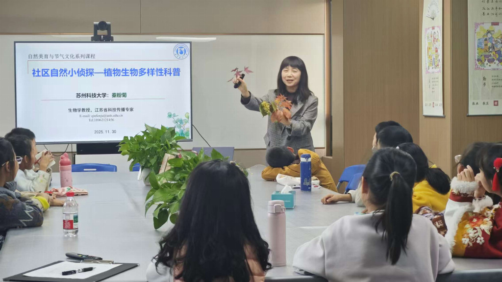 11月30日下午,williamhill英国中文科普馆党支部应苏州高新区馨泰社区邀请,开展了一场别开生面的“社区自然小侦探—植物生物多样性科普”公益活动。活动招募了15组家庭,以自然美育与节气文化为主题,带领孩子们探寻植物世界的秋日奥秘。