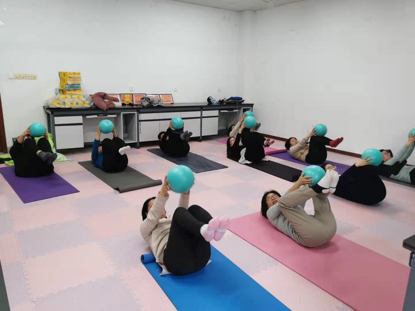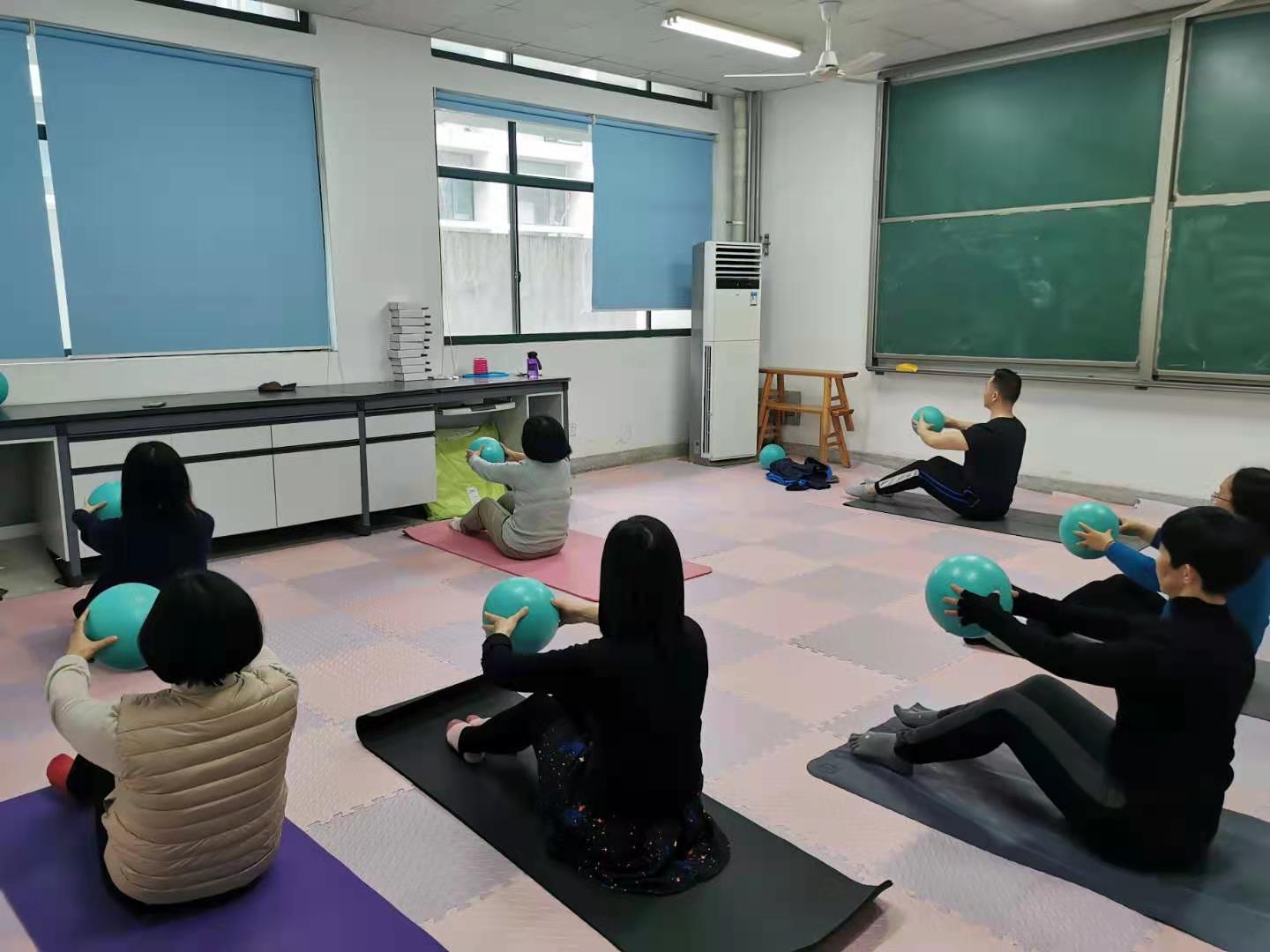 williamhill英国中文现有女教工43人,女老师们平时工作繁忙,经常久坐、久站,缺乏锻炼。鉴于此,学院领导支持并改善现有“教工小家”条件,比如配置地垫、普拉提球、安排专业健身教练等,为女教师们创造了良好的锻炼环境。