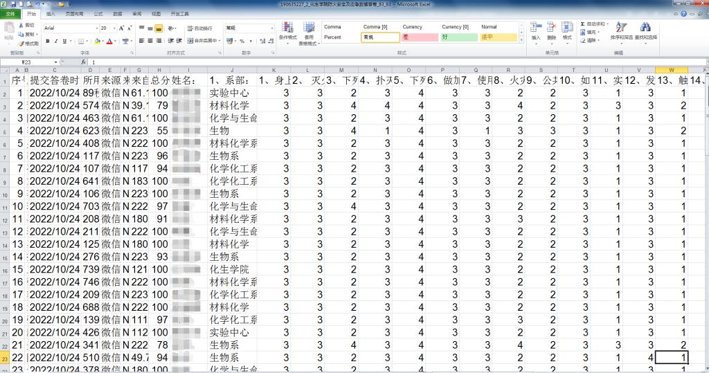化生学院分工会根据学院安全主题内容编辑题库、答卷。学院老师通过听讲座、操作、学习后,在手机或电脑上通过问卷星平台完成答卷。答卷共32题,设有单选题、多选题和判断题。全院教职工积极参与答题,90分以上合格,合格率93%。