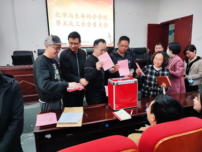 会上首先听取和审议了上一任工会主席金琎同志做的第三届工会委员会工作报告和财务报告;随后按照《中华人民共和国工会法》、《中国工会章程》和《工会基层组织选举工作条例》的规定,大会采取无记名投票的方式,进行差额选举。经过投票、计票、监票等严格程序,成功选举出新一届工会委员会。会上选举出了新一任工会主席胡翠英同志,以及两名委员甘甜和伊绵帅同志。期间,丛春秋书记对上一任三位工会委员进行了集体表彰并表示衷心的感谢。