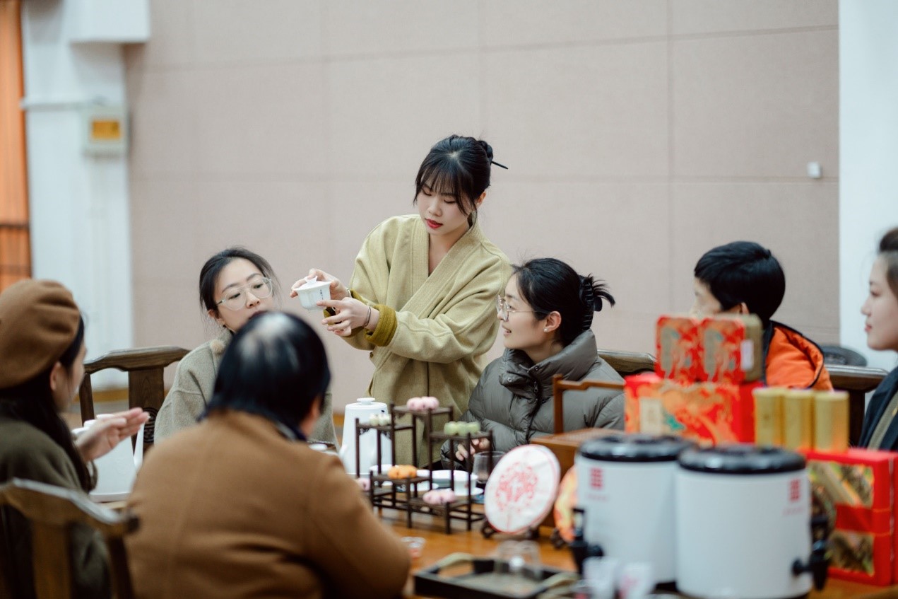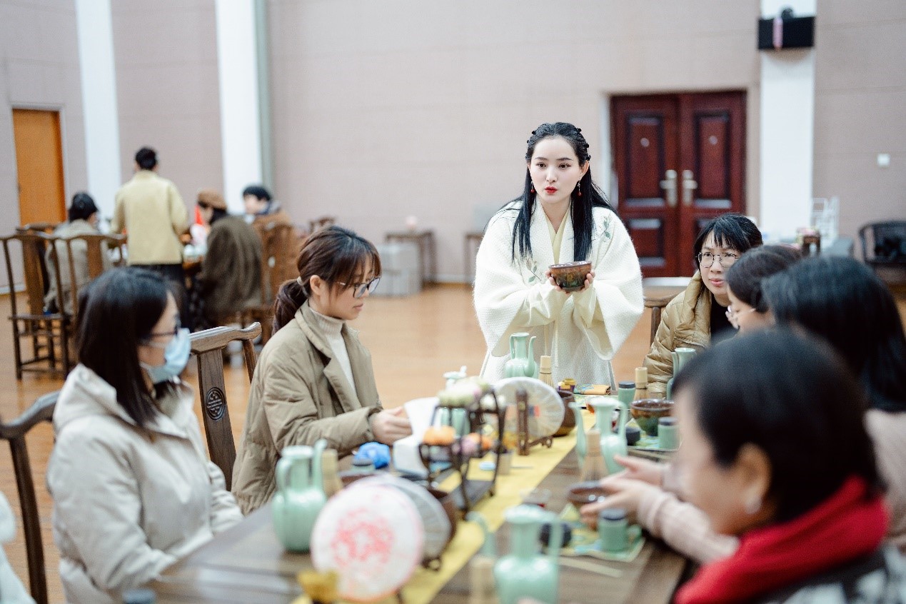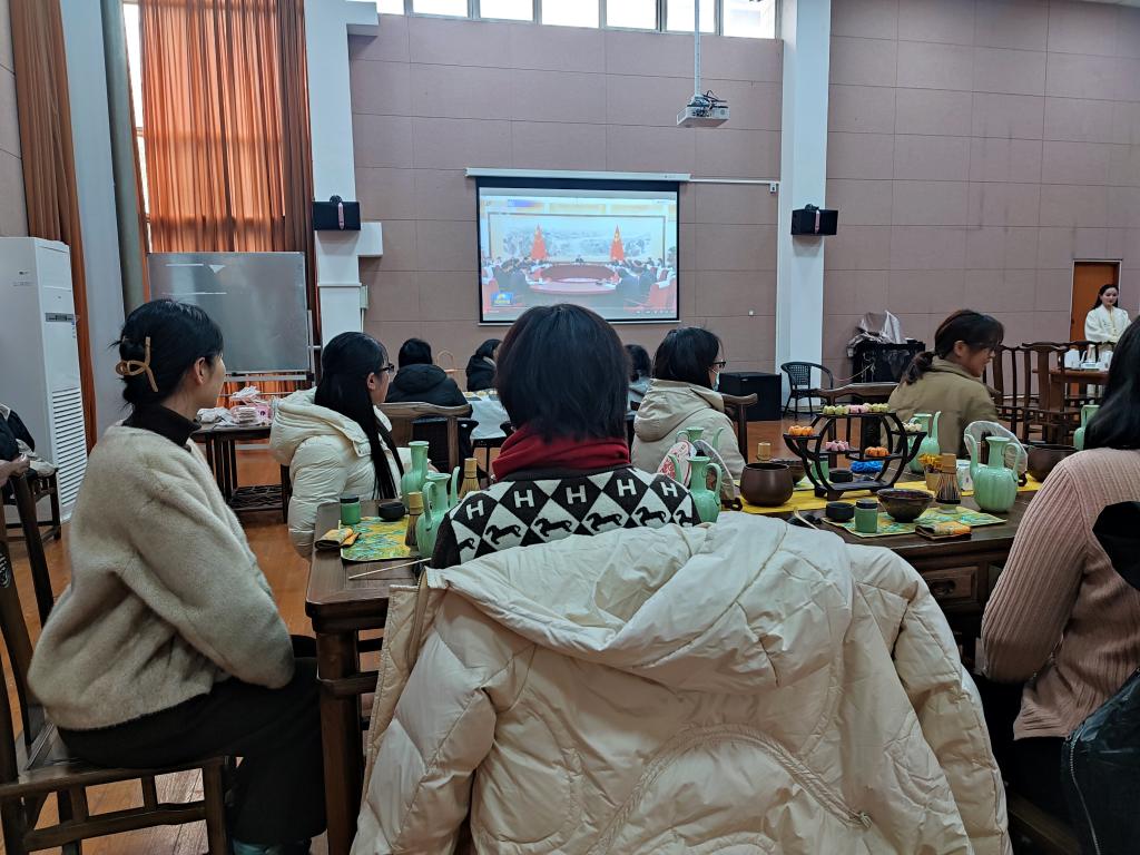 下午1:00,老师们陆续到达活动地点,学习和观摩了两位优秀老师的风采展示。活动开始,先观看了习近平总书记关于工人阶级和工会工作的重要论述、关于妇女工作的重要论述相关视频。之后活动分为了四个区域:点茶体验、茶点制作、泡茶技艺、茶点品尝区,老师们可以轮流到每个区域充分体验和学习。在茶点老师的介绍和指导下,了解了点茶的历史渊源,并跟随专业师傅们的细心指导下,亲自尝试了点茶、泡茶和制作茶点的技艺,同时在制作的过程中互相交流经验和分享感受。