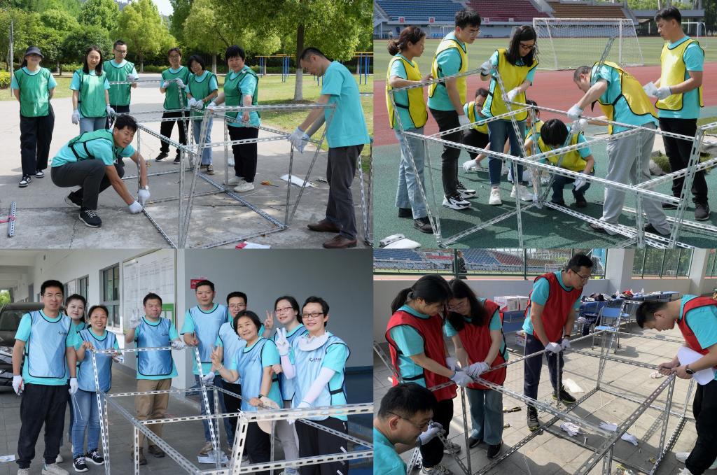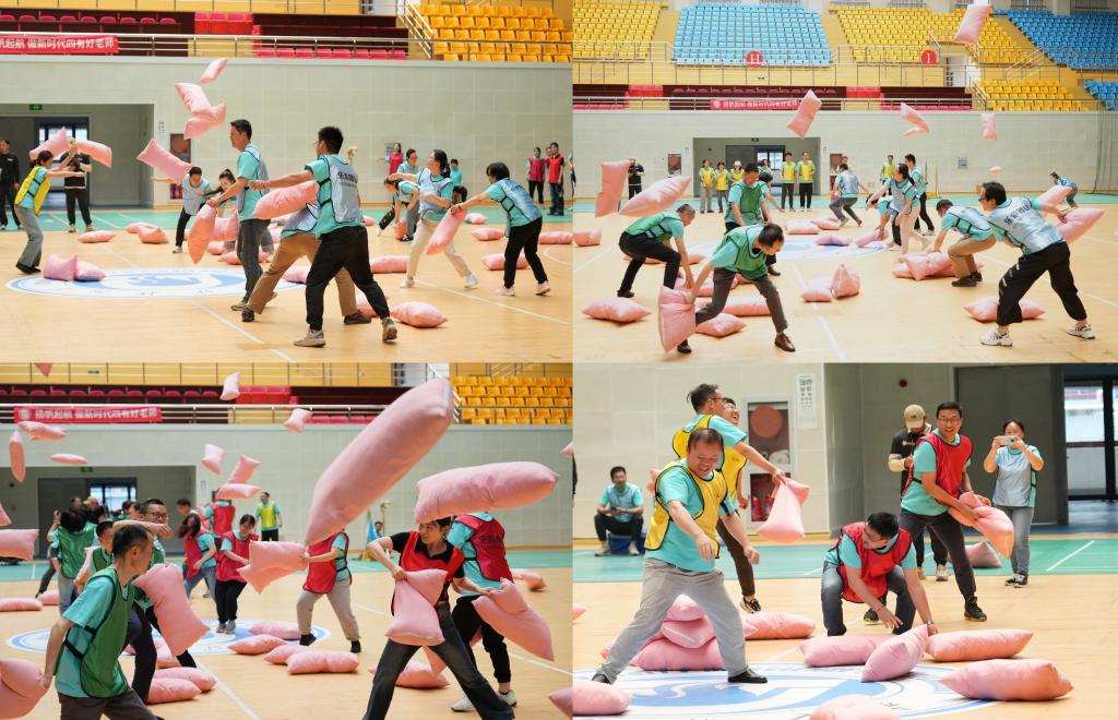 此次团建活动设置了“破冰之旅”、“枕头大战”和“扬帆起航”等精彩纷呈的项目,集挑战性、技巧性、知识性与趣味性于一体。首先,教练巧妙地设计了热身运动,帮助教师投入状态。在“破冰之旅”环节,老师们根据教练的指示喊出相应的话语并做出与口号相同或相反的动作,进一步打破了老师们的生疏感,加强了教师之间的凝聚力。随后,参与活动的全体教师随机分组形成四个战队进行“枕头大战”活动,在选队长、起队名、定口号、摆造型、做游戏的合作过程中,促进了不同系部教师之间的联系,增强了团队合作意识;同时,也帮助教师快速释放压力、提高反应能力。在“扬帆起航”环节,四个战队分工明确,团结合作,共同搭建船身、船头与船帆并进行组装。尽管因材料问题,导致搭建船身困难重重,教师们仍然能够坚持完成任务,这不仅展现出我院教师精诚合作的团队精神和勇于担当的责任心态,更表现出卓越的动手能力,体现了我院教师在日常教学和科研中能够躬身实践、知行合一,行而不辍、履践致远。最后,本次团建活动在欢声笑语中圆满结束。