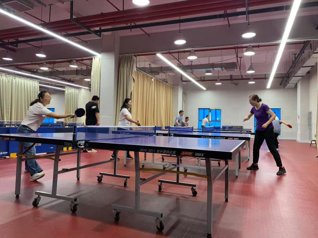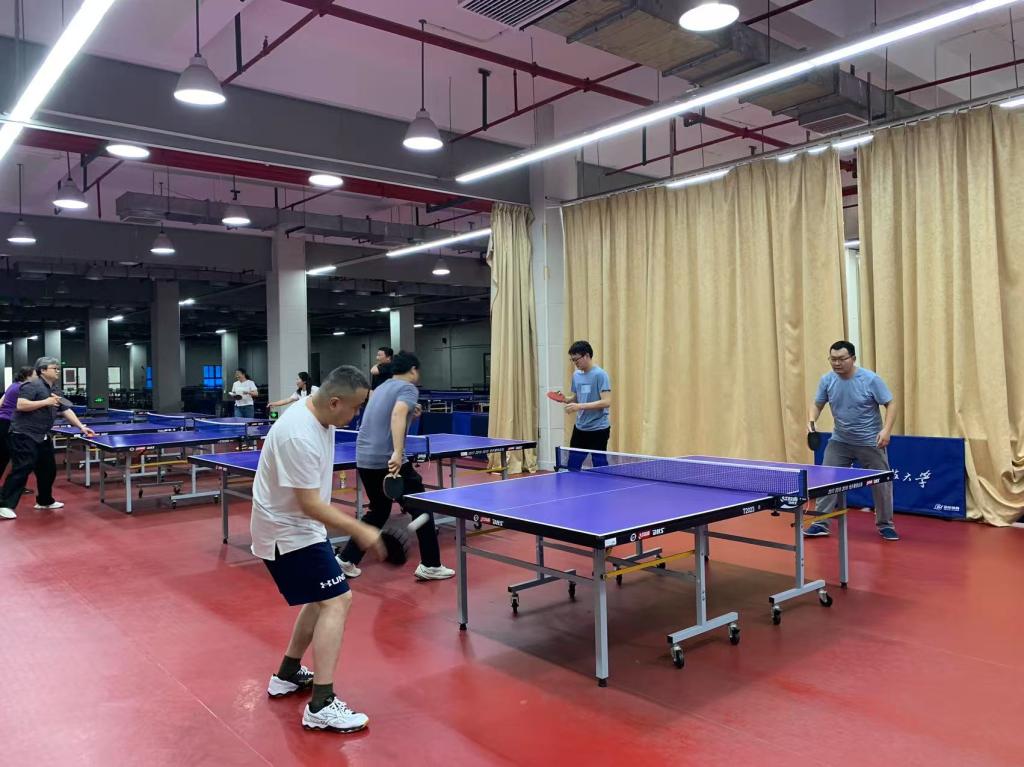本次比赛吸引了来自两院的十多名教师代表同台竞技。赛场上,直拍横打、旋转发球、强力扣杀等专业动作频现,精彩回合赢得满堂喝彩,微小失误引发阵阵叹惋。比赛过程中,各位老师不仅展现了精湛的乒乓球技术,而且就相关生活、体育锻炼和教学等问题进行了友好沟通与交流。
