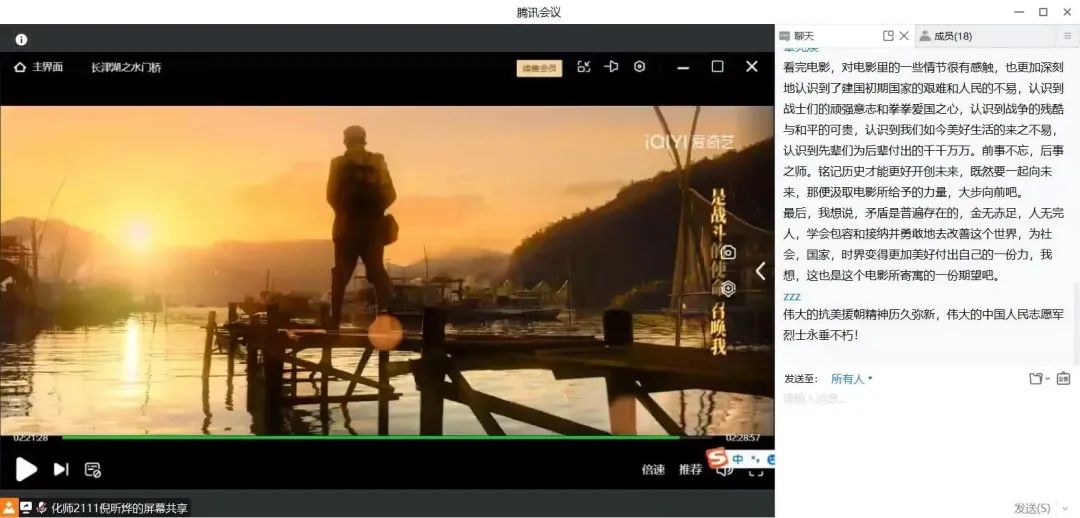 为学习宣贯彻党的二十大精神,扎实推进党史学习教育,缅怀革命先烈,弘扬爱国主义精神。williamhill英国中文“习研荟”青年学习社与团委新媒体中心于2月8日下午一点整开展了“传承红色基因,汲取奋进力量。”——光影里的中国之《长津湖之水门桥》线上观影活动,组织学生重温波澜壮阔的历史,引导化生学子理解并传承抗美援朝精神。