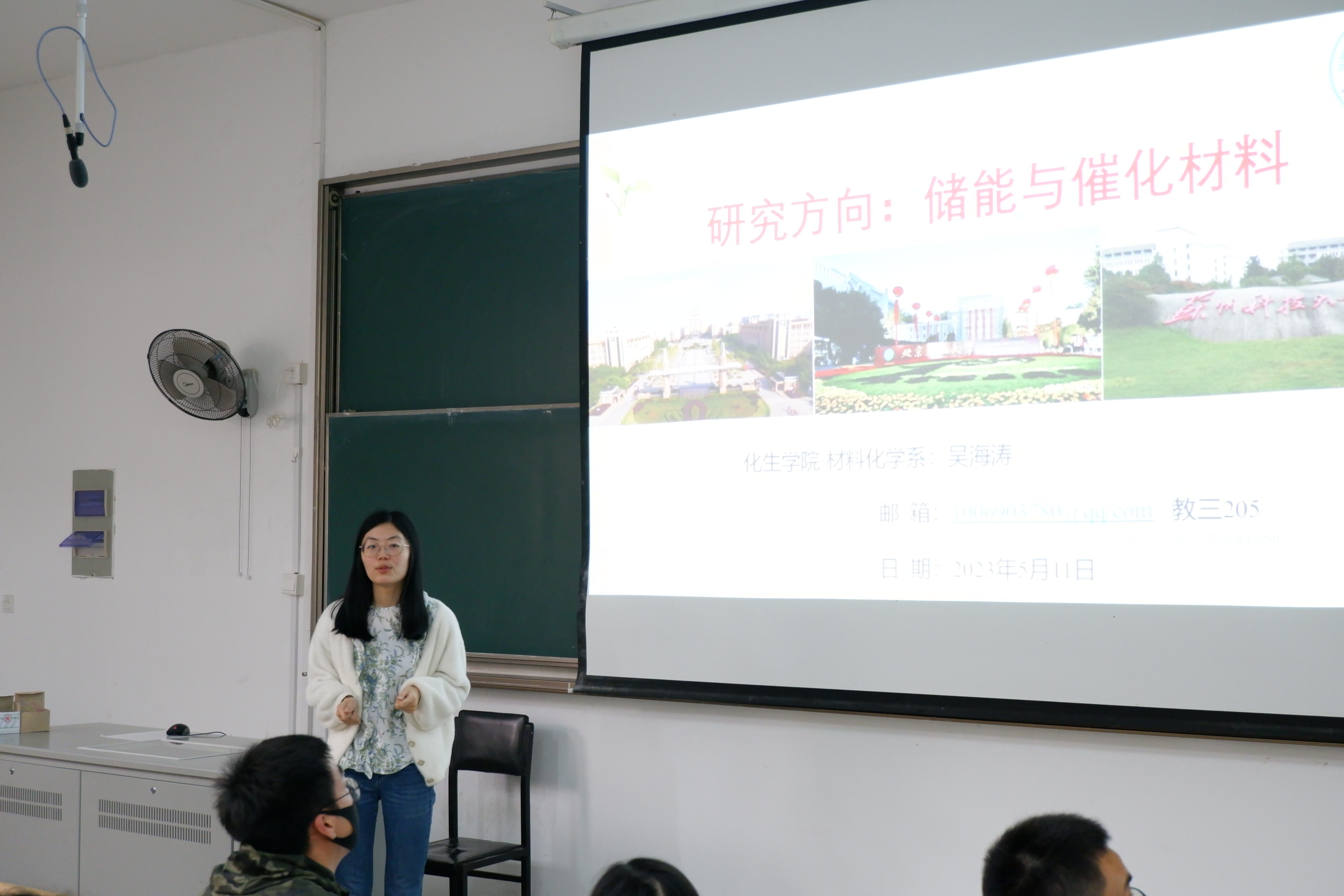 活动中,化生学院各科研团队老师代表针对团队组成、科研方向和成绩,以及本科期间参加科创训练的重要性和必要条件进行了详细的分享,倡导广大学生积极主动将所学与所需相结合,从小切口入手,依托专业背景和兴趣特长进行选题。随后,进行师生互动,为学生提供针对性引导和常见技术问题的答疑解惑,激发学生科学研究兴趣,帮助学生确立探索未知的底气和勇气,信心与决心。