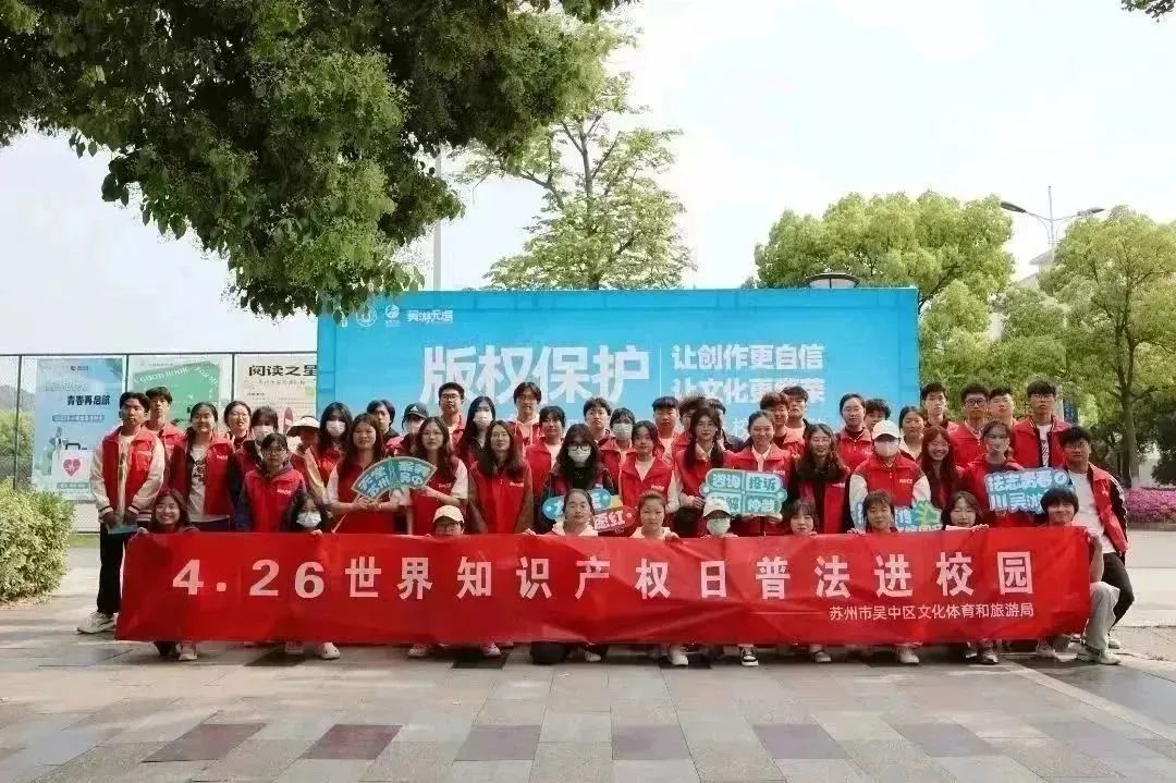 在活动现场,吴中区文化市场综合执法大队布展了“2022年度江苏省打击侵权盗版十大典型案件”,设置了版权保护咨询台,同时“吴游无虑”志愿者发放了宣传手册,讲解了每个案例的内容和警示意义,通过以案释法,引导苏科大化生学院师生增强知识产权保护意识。