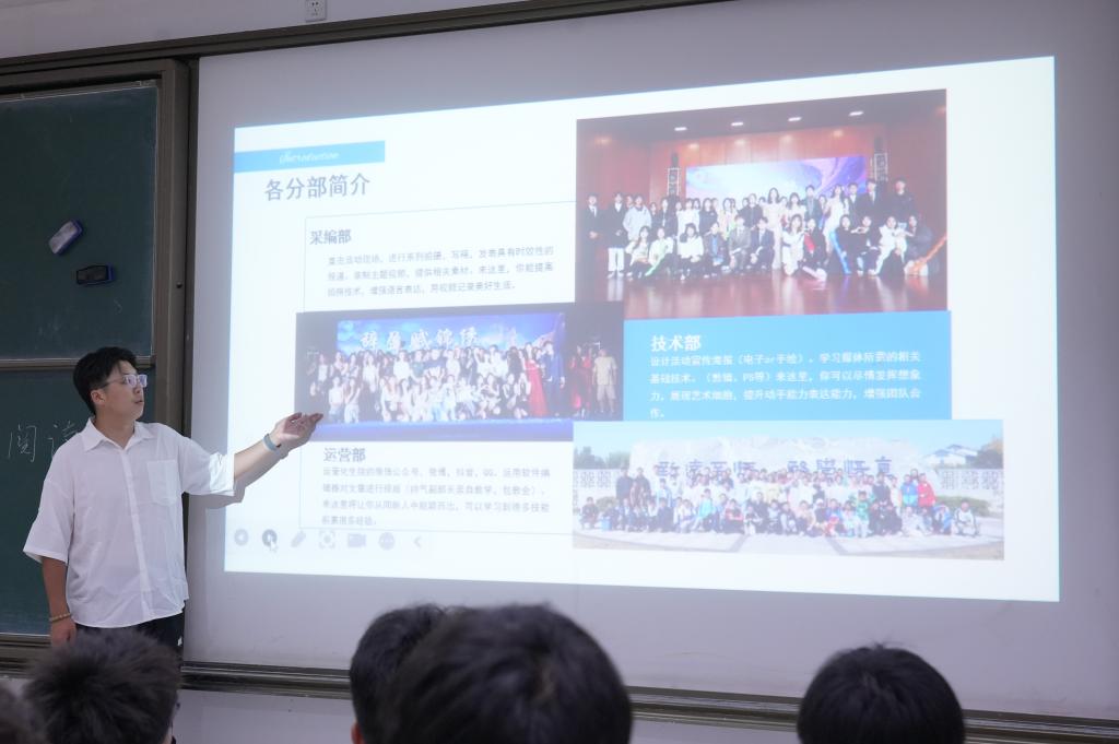 团学各部门部长详细介绍了相关部门的工作内容与招新要求。部长充满激情的宣讲,使得新生对团学组织有了进一步的认识,也展现出各部门对新生加入团学组织的欢迎与期待。