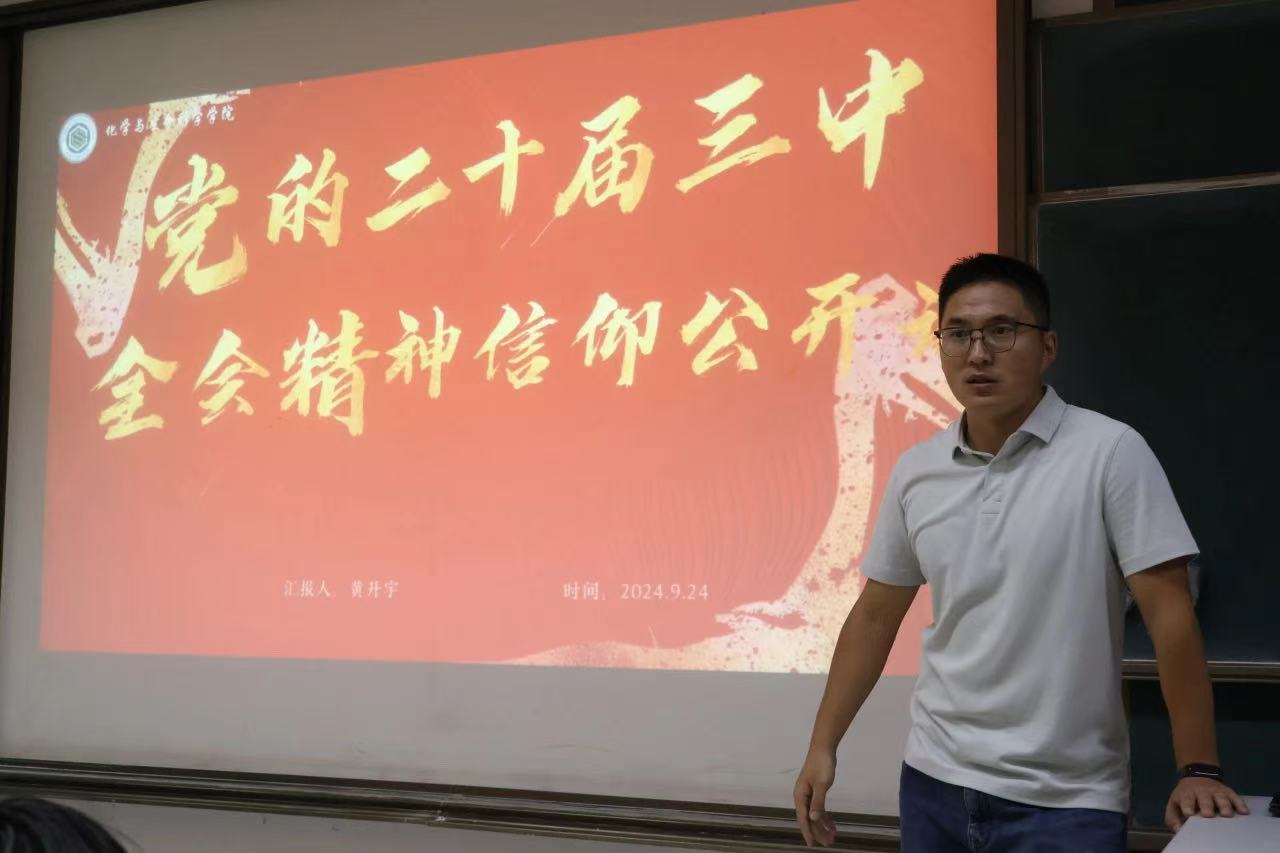 9月24日晚,学院在教6-306教室举办学习党的二十届三中全会精神信仰公开课暨秋季学生骨干专题培训大会辅导员黄开宇向与会成员授课。会议由学工办副主任张玄烨主持,学院全体团干部,各团支部委员,学生组织成员,各专业学生代表和学生党支部全体党员参加。