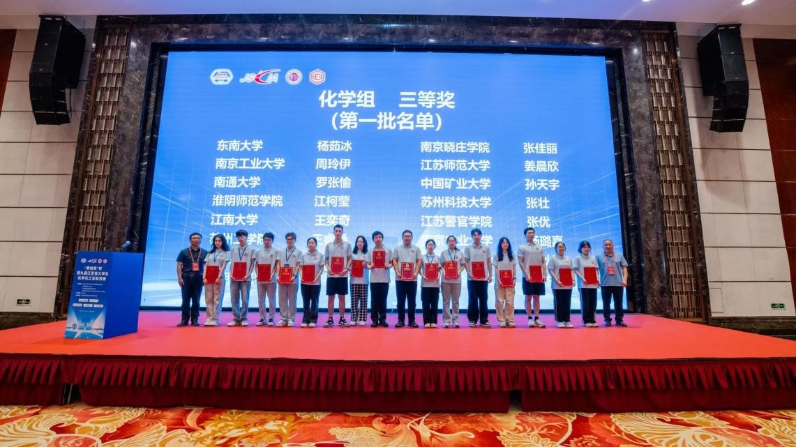 江苏省大学生化学化工实验竞赛是省级A类学科竞赛,由江苏省大学生化学化工实验竞赛组委会、江苏省化学化工学会、江苏省高校实验室研究委员会以及江苏省高等学校化学化工实验教学示范中心联席会主办,本次大赛共吸引省内37所大学的61支队伍报名参赛。