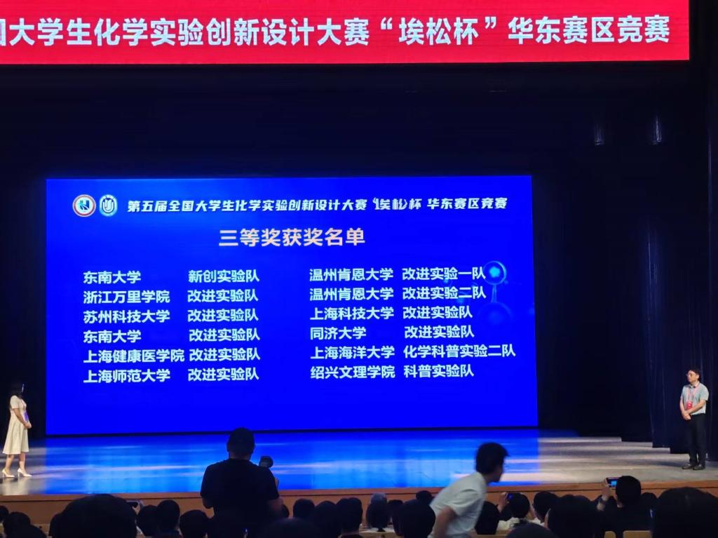 本次大赛由教育部高等学校化学教育研究中心和教育部高等学校国家级实验教学示范中心联席会主办,上海大学承办。大赛共吸引来自南京大学、复旦大学等45所高校的178支队伍参赛,经过专家严格评审,107支队伍进入决赛参与答辩。经过两天紧张的现场答辩与作品展示,本届华东赛区竞赛共计产生26支一等奖作品、43支二等奖作品和52支三等奖作品。化生学院将以此竞赛为契机,继续深化以赛促学、以赛促教、以赛促创、以赛促改、教赛相长,切实提升学院本科生的创新实践能力,探索人才培养新途径,全面提升大学生专业背景下的核心竞争力。