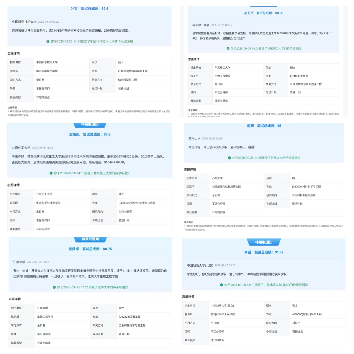 williamhill英国中文首届推免工作取得突破性成果:6名推免生全部被国内高水平大学录取。其中,叶雯拟录取中国科学技术大学,赵可怡拟录取华东理工大学,李涵录入中国地质大学,袁晓凤拟录取北京化工大学,姜梦娜拟录取江南大学,赵研拟录取苏州大学。6名同学成功进入6所国内知名985、211高校最终录取名单,标志着学院人才培养质量获得广泛认可。